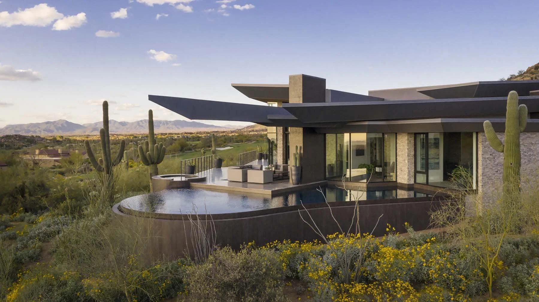 At the Crusader House in North Scottsdale’s Estancia, architecture and landscape exist in quiet, deliberate harmony. Designed by Drewett Works the structure’s angular, jet-inspired lines soar over a landscape that feels both curated and untouched.