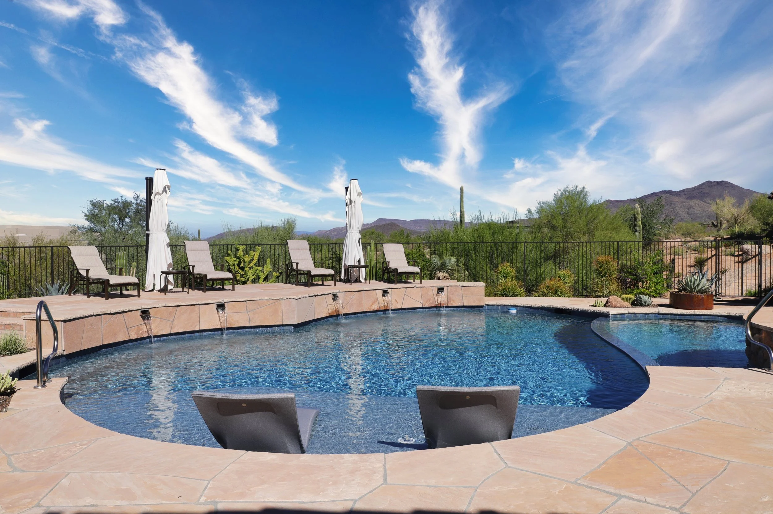 This featured Scottsdale estate showcases the artistry of High Desert Designs in collaboration with Steve Oliver of Creative Water Concepts. As a Master of the Southwest and one of the region’s most celebrated pool designers, Oliver brings over four decades of expertise to our exclusive partnership. Together, we created a resort-style retreat where sculptural desert plantings and custom hardscape seamlessly frame a showpiece pool and spa—an elevated outdoor living experience.